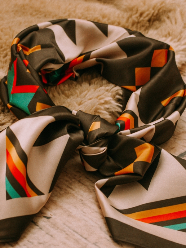 A wild rag for the classic cowgirl. A bright and eye-catching western aztec pattern makes this scarf a classic western wardrobe staple for all year round.