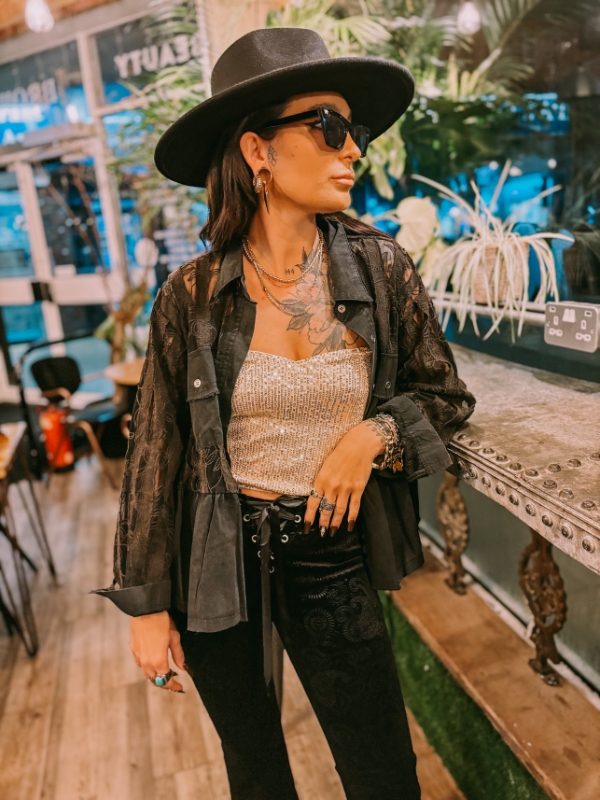 A dark masterpiece, this Black Lace Contrast Oversized Shacket combines hints of gothic romance, elegance and country casual to form a stunning and versatile wardrobe addition.