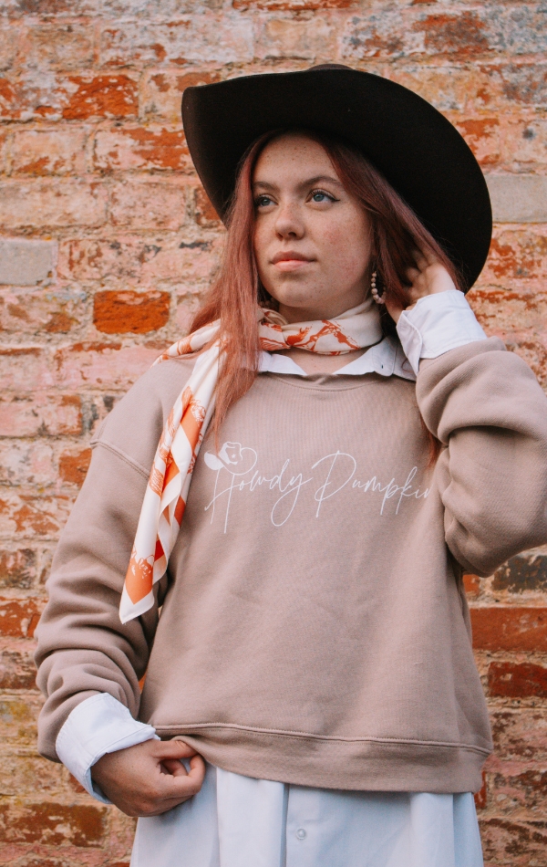 What better way to celebrate the Halloween season than with our “Howdy Pumpkin” Sweatshirt in Tan – a perfect blend of boho charm and western flair!